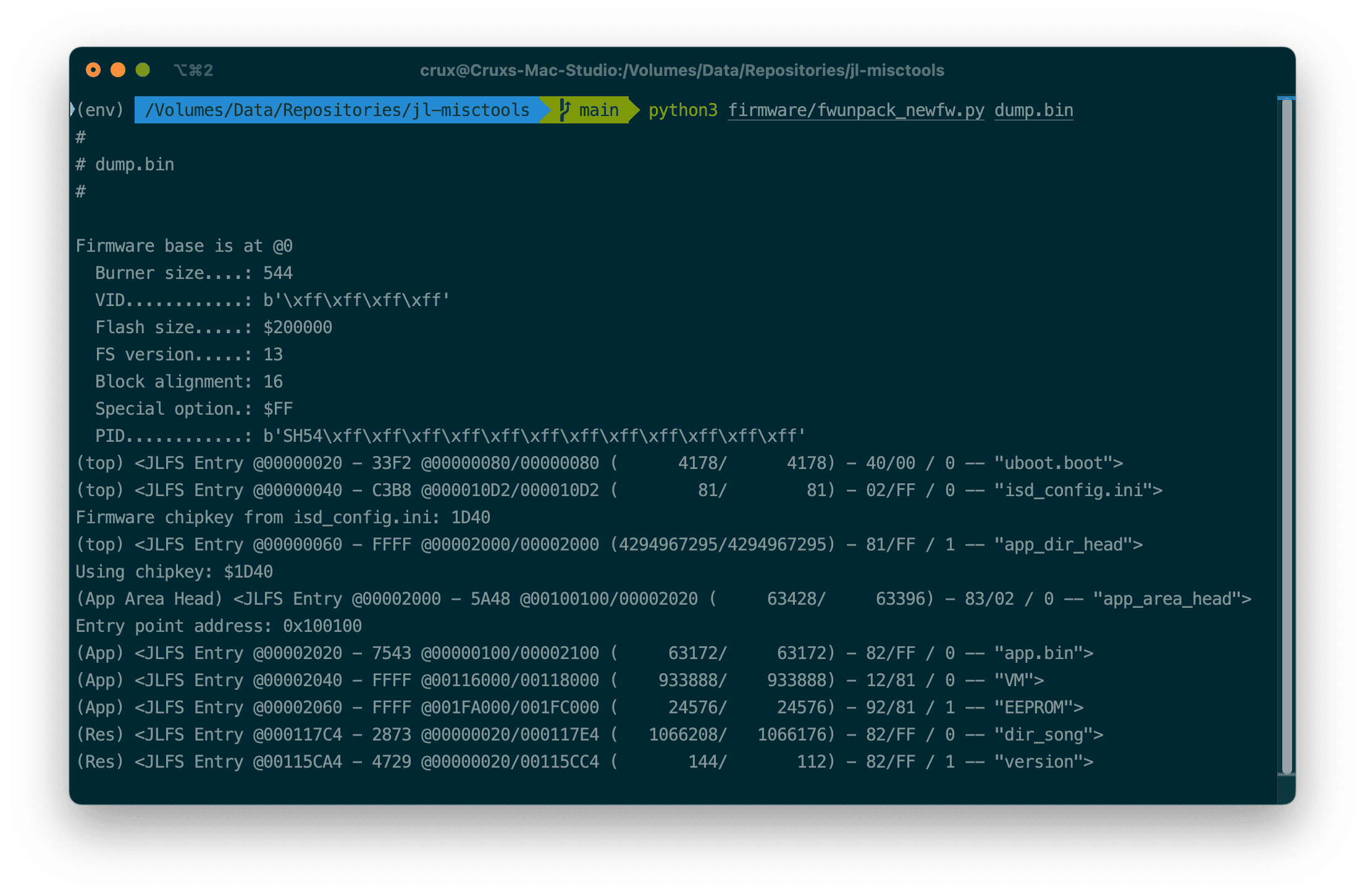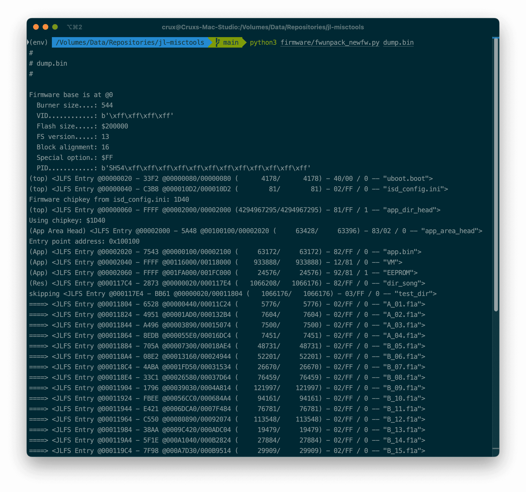 아무튼 해당 Repo를 읽어보니까 아예 암호화 키가 chipkey.bin이라는 파일 안에 박혀있어서 따로 bruteforce 돌릴 필요도 없단다. 우리는 그냥 fwunpack_newfw.py만 실행해주면 된다.