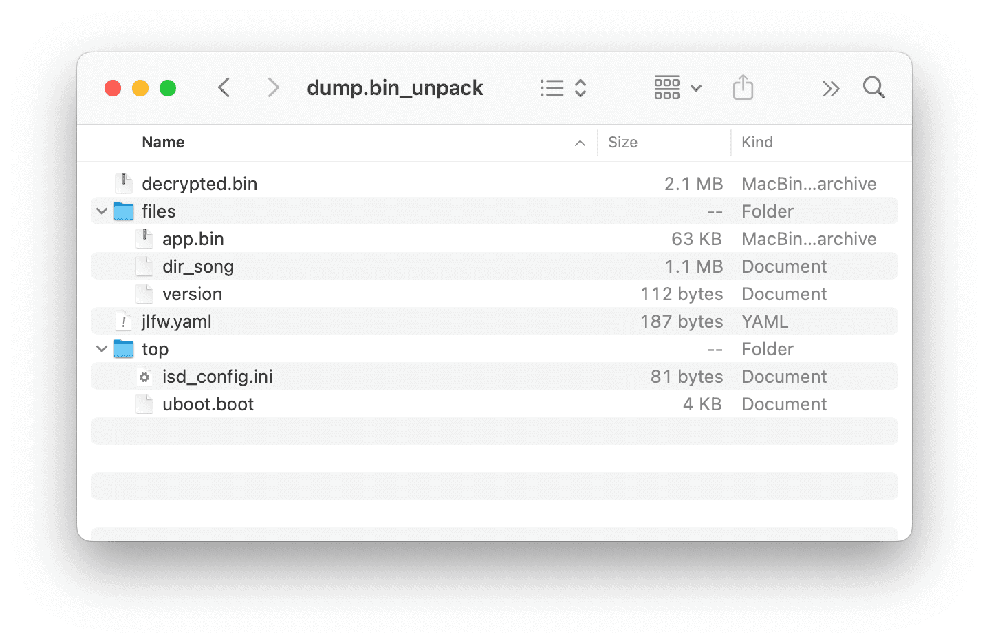 실행하면 깔끔하게 복호화된 decrypted.bin 파일과 함께 파일 시스템 내 폴더와 파일이 언팩된다.