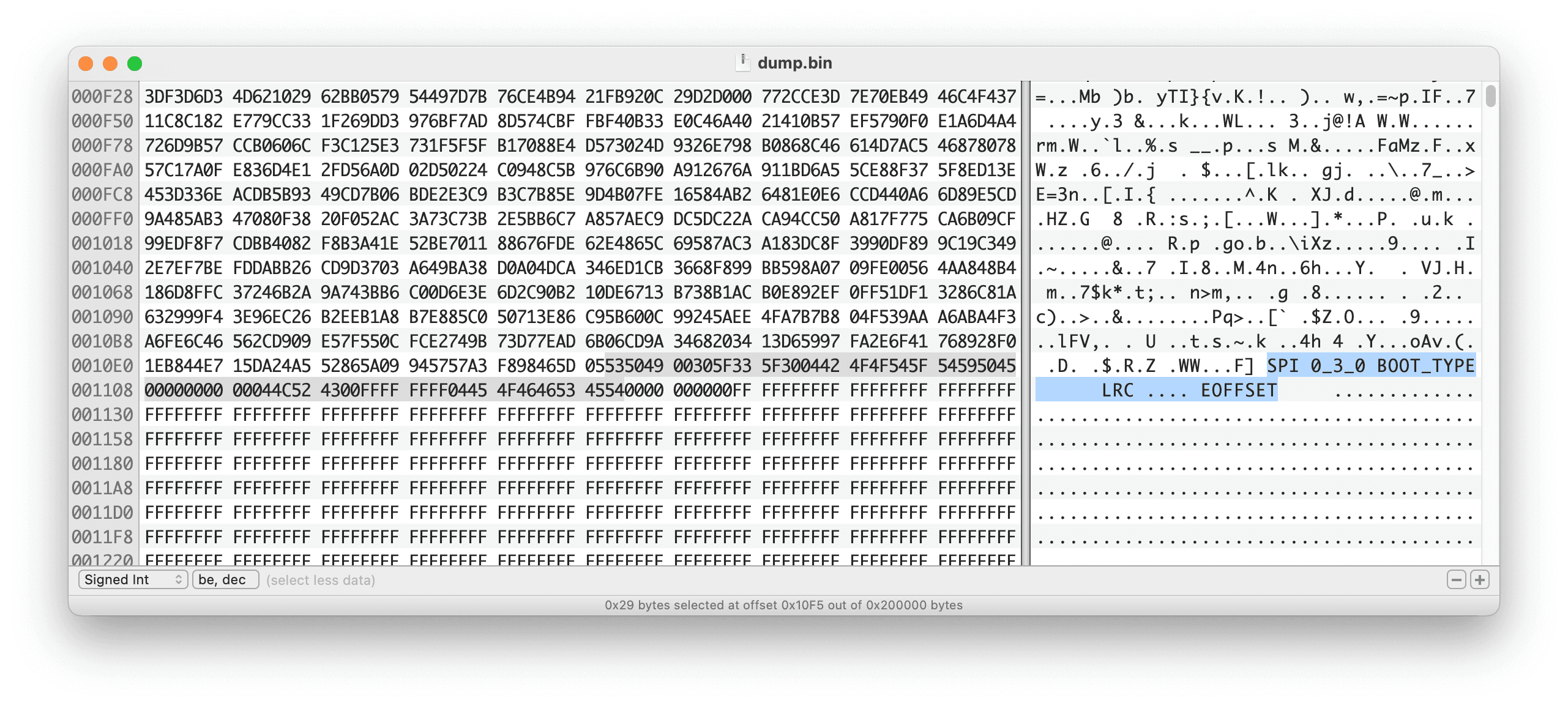 처음 바이트가 ASCII 문자열 "0.01"로 시작한다는 점을 제외하면, "SH54", "SPI 0_3_0 BOOT_TYPE" 문자열이 포함되어 있다는 것도 매우 비슷하다. 이러면 보이스 디바이스의 메인 MCU도 JieLi라는 같은 제조사 제품이라고 추정해 볼 수 있다.
